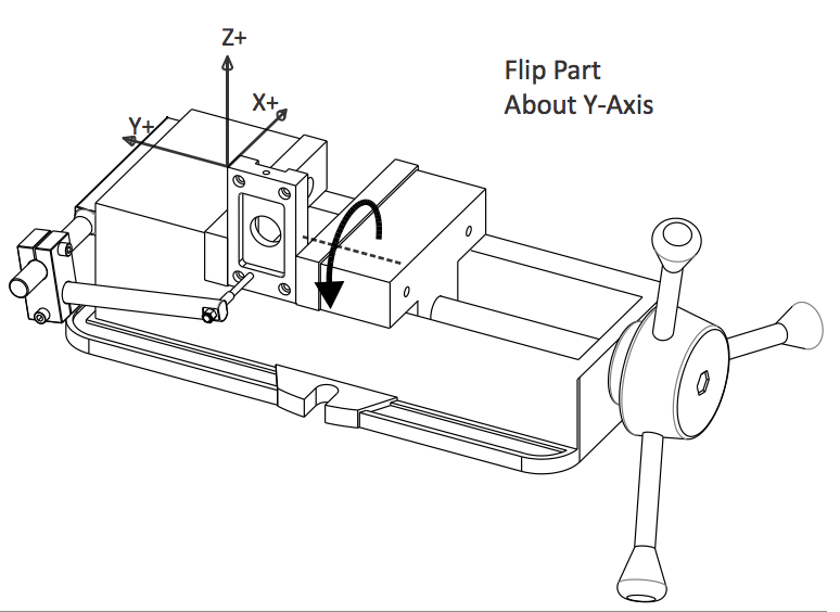 Now the part has to be flipped over to work on the other side. Since we just flipped the part 180 degrees, the outer contour was symmetric, and the previous X and Y offsets were repeatable, the WCS will not change. We are also using the same tool, so the same Z offset can be used.